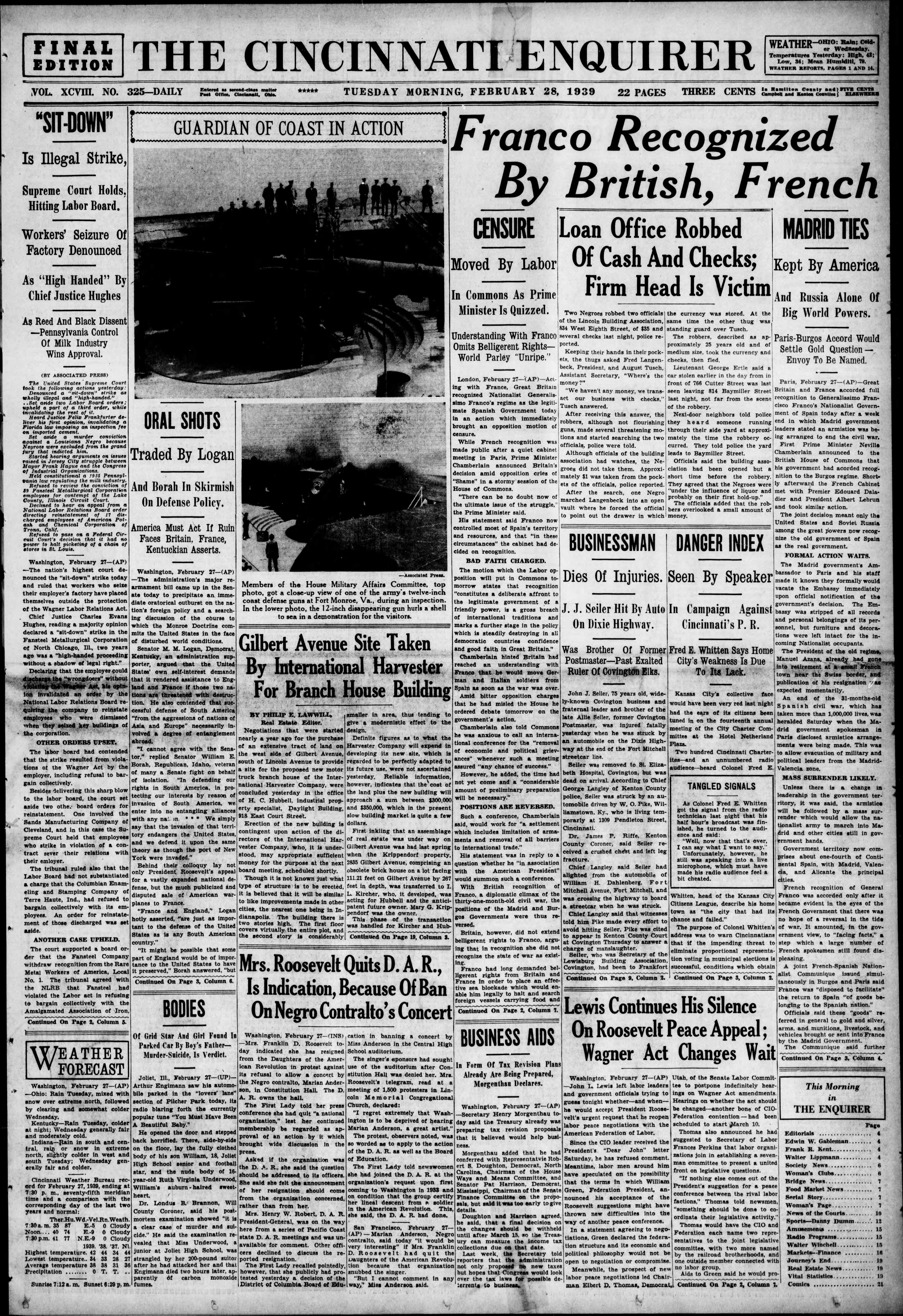 - Washington, February 27—(INS)—Mrs. Franklin D. Roosevelt today indicated she has resigned from the Daughters of the American Revolution in protest against its refusal to allow a concert by the Negro contralto, Marian Anderson, in Constitution Hall. The D. A. R. owns the hall.