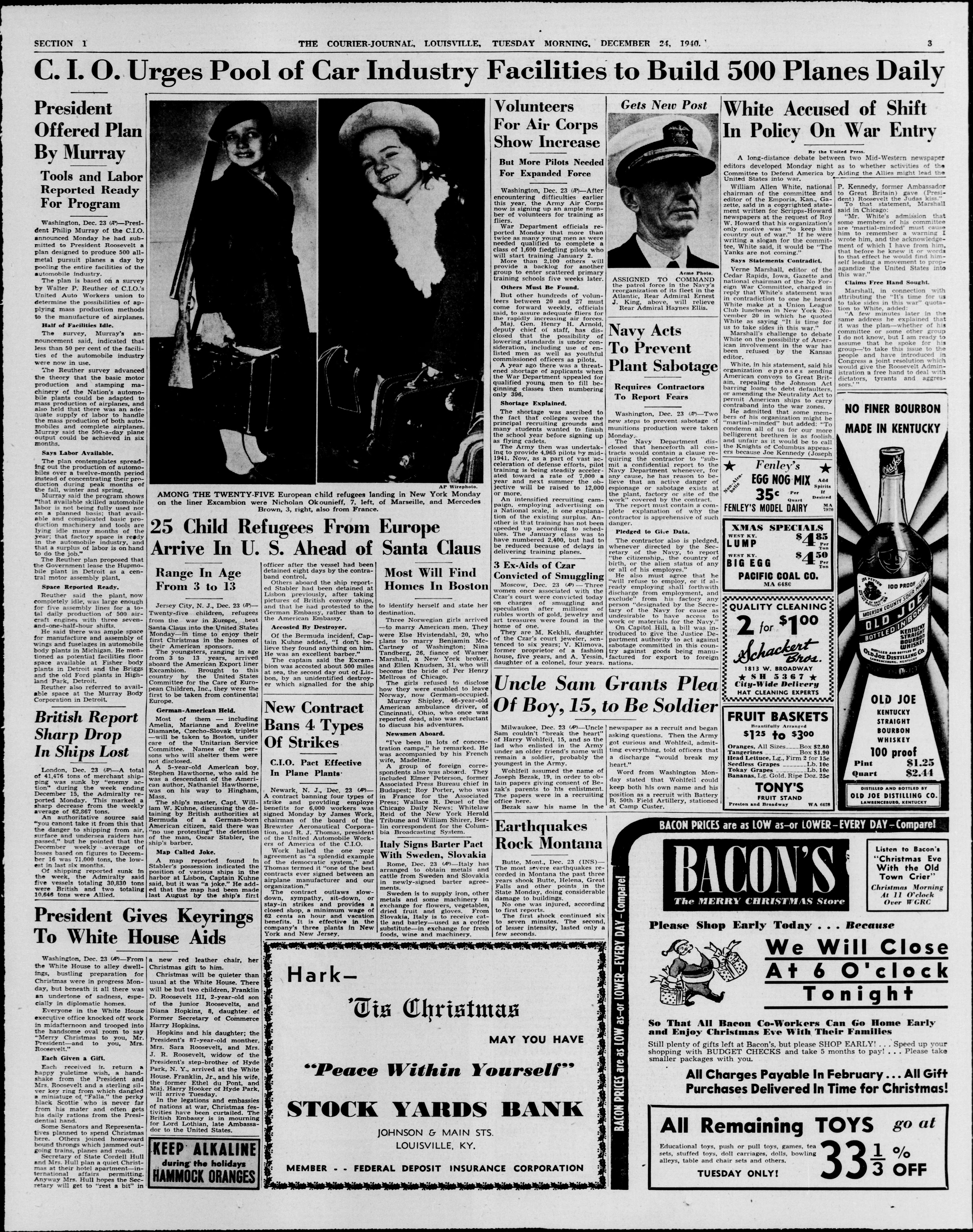 - Jersey City, N.J., Dec. 23—(AP)—Twenty-five children, refugees from the war in Europe, beat Santa Claus into the United States Monday—in time to enjoy their first Christmas in the homes of their American sponsors.