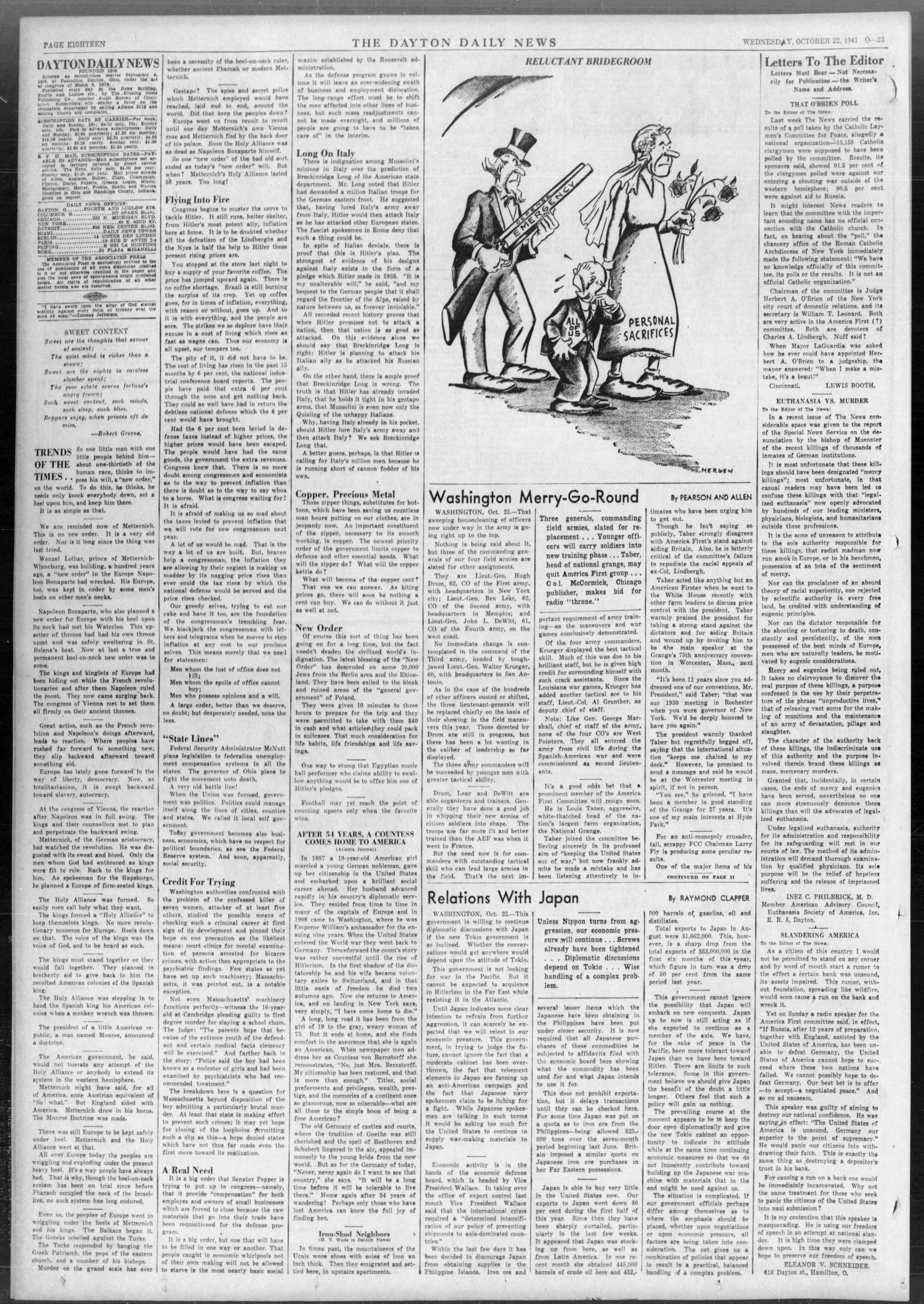 - EUTHANASIA VS. MURDER To the Editor of The News: In a recent issue of The News con• siderable space was given to the report of the Special News Service on the denunciation by the bishop of Muenster of the recent killings of thousands of inmates of German institutions. It is most unfortunate that these killings should have been designated "mercy killings"; most unfortunate, in that casual readers may have been led tO confuse these killings with that "legalized euthanasia" now openly advocated by hundreds of our leading ministers, physicians, biologists, and humanitarians outside these professions. It is the acme of unreason to attribute to the sole authority responsible for these killings, that sadist madman now run amok in Europe, or to his henchmen, possession of an lota of the sentiment of mercy. Nor can the proclaimer of an absurd theory of racial superiority, one rejected by scientific authority in every free land, be credited with understanding of eugenic principles. Nor can the dictator responsible for the shooting or torturing to death, constantly and persistently, of the men possessed of the best minds of Europe, men n who are naturally leaders, be motivated by eugenic considerations. Mercy and eugenics being ruled out, it takes no clairvoyance to discover the real purpose of these killings, a purpose confessed in the use by their perpetrators of the phrase "unproductive lives," that of releasing vast sums for the making of munitions and the maintenance of an army of devastation, pillage and slaughter. The character of the authority back of these killings, the indiscriminate use of this authority and the purpose involved therein brand these killings as mass, mercenary murders. Granted that, incidentally, in certain cases, the ends of mercy and eugenics have been served, nevertheless no one can more strenuously denounce these killings than will the advocates of legalized euthanasia. Under legalized euthanasia, authority for its administration and responsibility for its safeguarding will rest in our courts of law. The method of its administration will demand thorough examination by qualified physicians. Its sole purpose will be the relief of hopeless suffering and the release of imprisoned lives. INEZ C. PHILBRICK, M. D. Member American Advisory Council, Euthanasia Society of America, Inc. R. R. 5, Dayton.