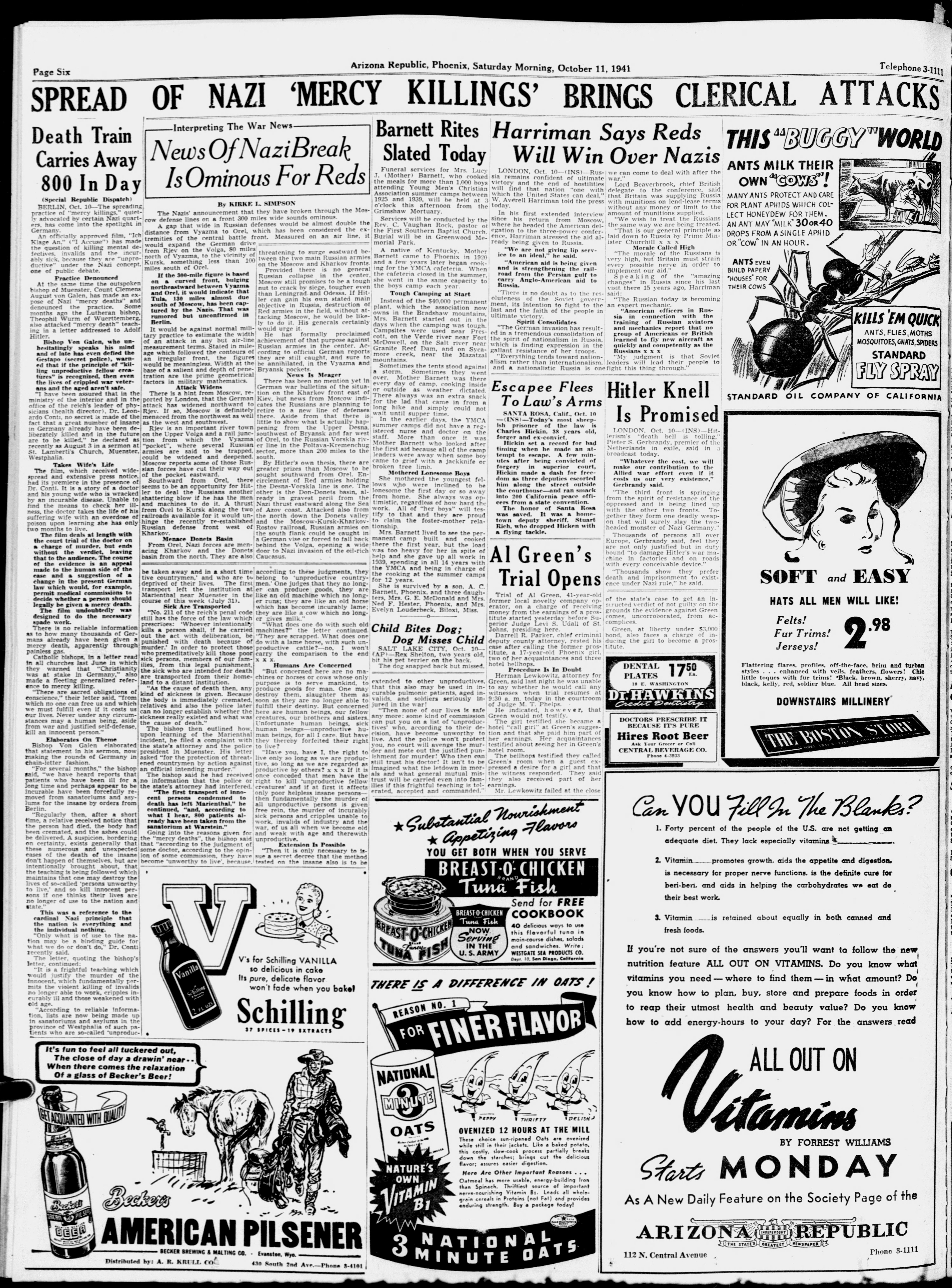 Bishop Von Galen, who unhesitatingly speaks his mind and of late has even defied the Gestapo (secret police), warned that if the principle of "killing unproductive fellow creatures" is recognized, then even the lives of crippled war veterans and the aged aren't safe.
